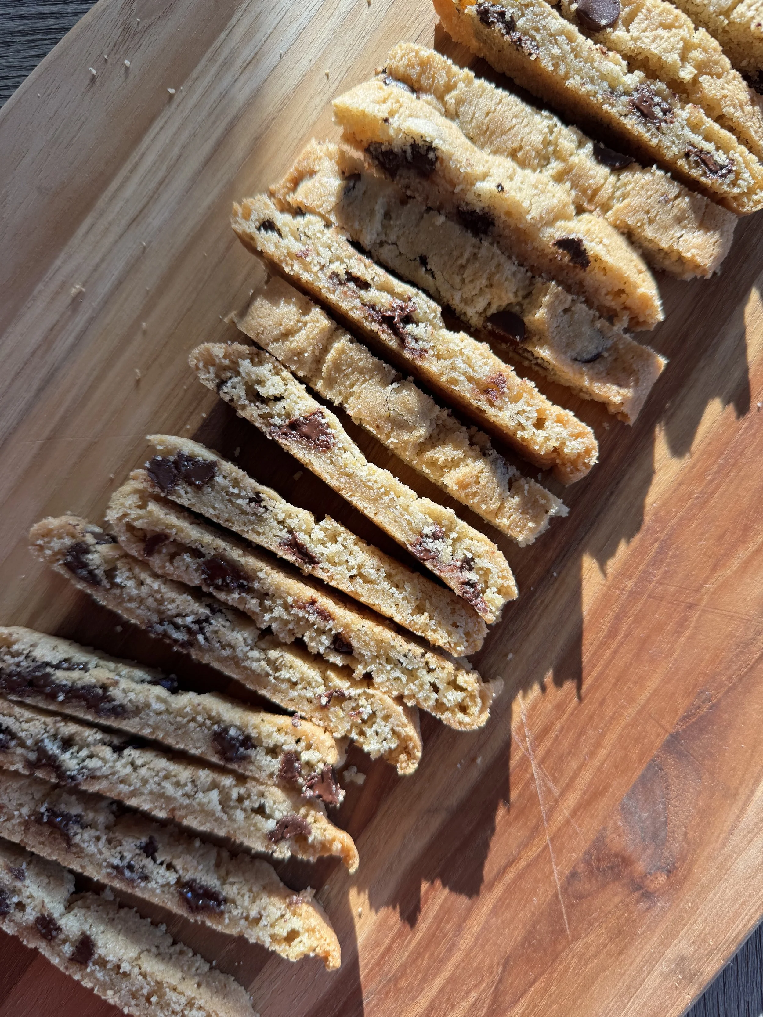 Image 1 of 2 Image 2 of 2 Chocolate Chip Cookie Sticks (gluten free) - PARVE $28.00 PARVEPer DozenGluten FreeContains Almonds Add To Cart Added! PARVEPer DozenGluten FreeContains Almonds