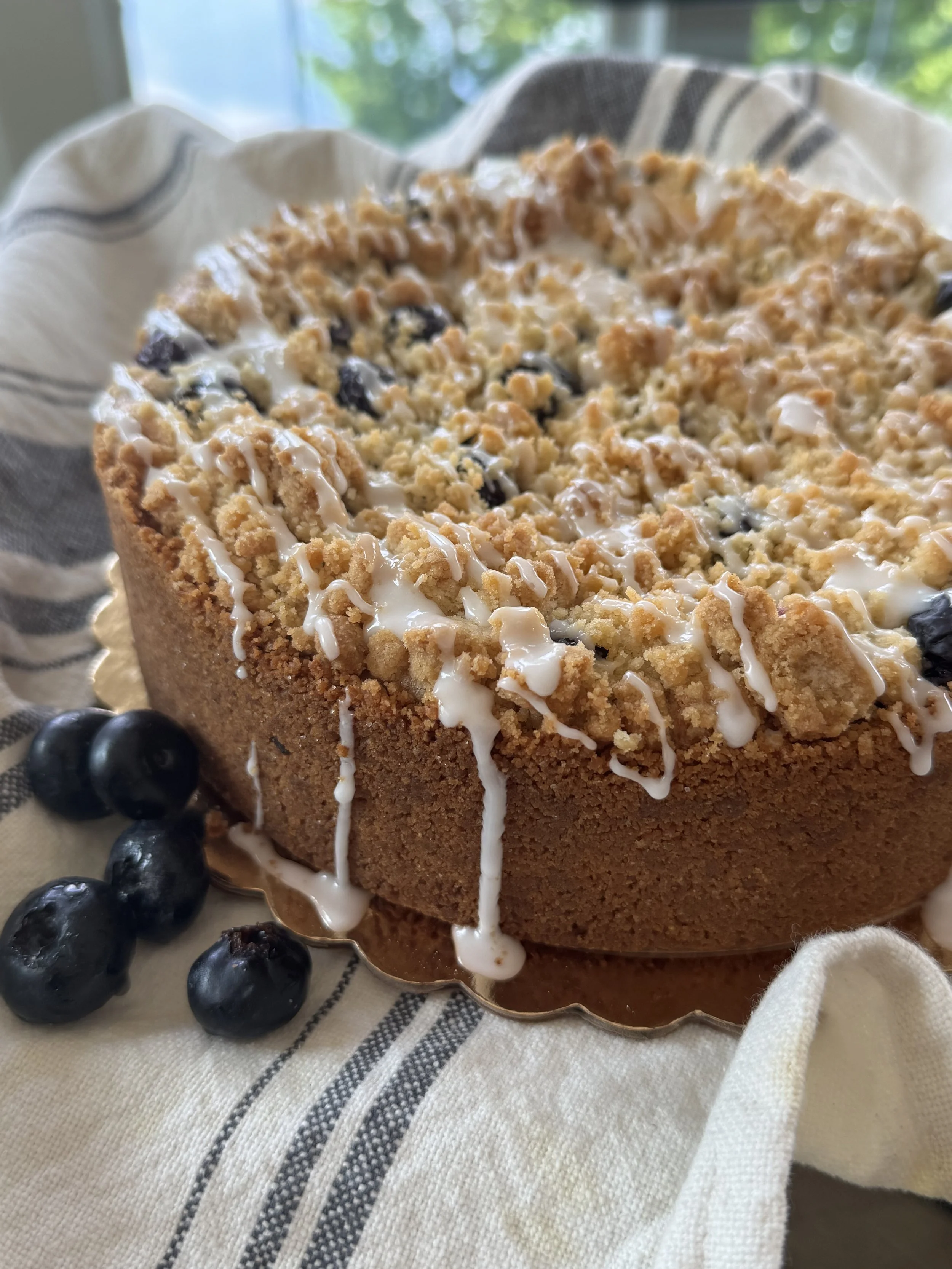 Image 1 of 2 Image 2 of 2 Blueberry Crumb Cheesecake (DAIRY) $80.00 Nut Free Add To Cart Added! Nut Free